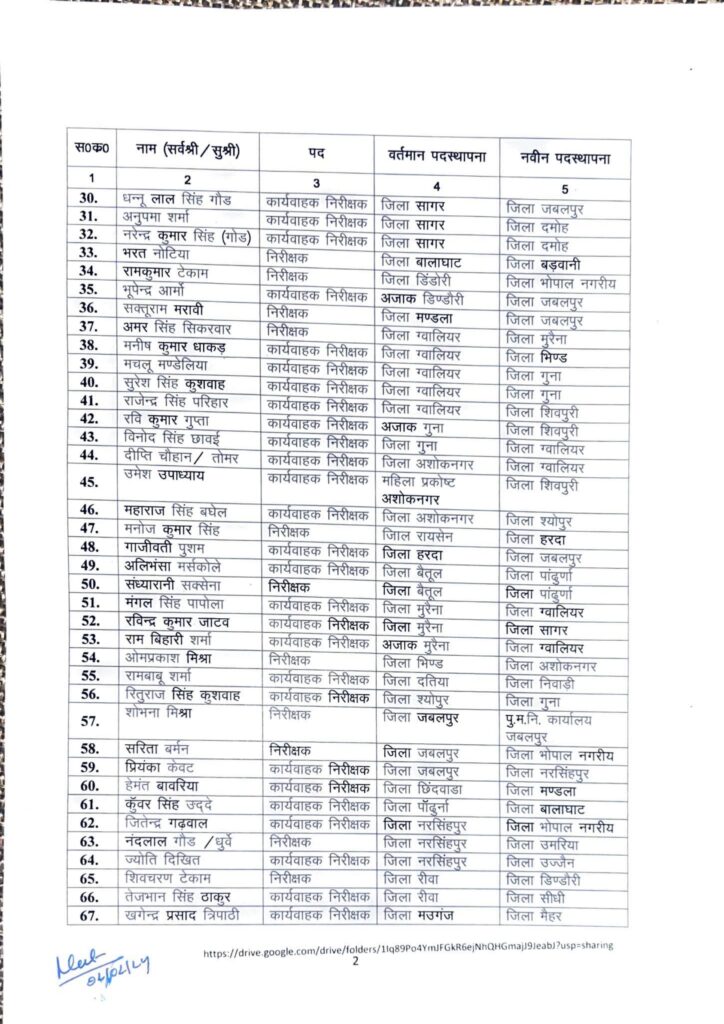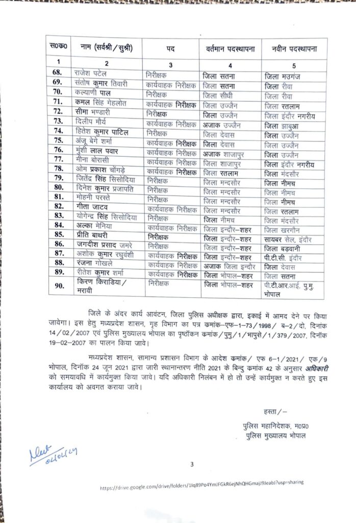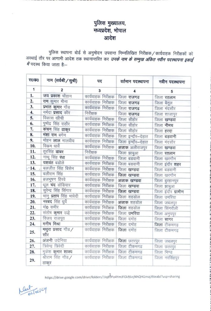 Police TI Transfer मध्य प्रदेश बड़े पैमाने पर पुलिस टीआई के तबादले, देखें लिस्ट