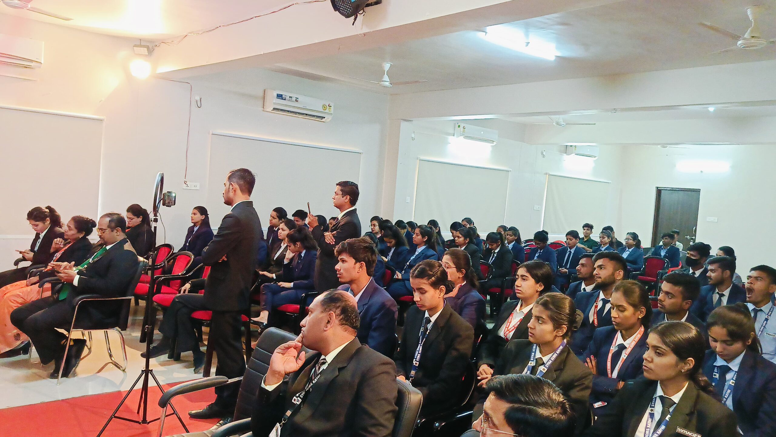 इसके पश्चात आज के कार्यक्रम में मुख्य अतिथि व मुख्य वक्ता के रूप में सायना इंटरनेशनल स्कूल के प्राचार्य डॉ. आदित्य कुमार शर्मा उपस्थित हुए। महाविद्यालय के प्राचार्य डॉ. सी.राजेश कुमार द्वारा पुष्प गुच्छ भेंट कर स्वागत किया गया।